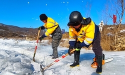 丹东工务段丹东桥隧车间工长罗军带领工区职工正全力清理桥下涵渠积冰,这群坚守在严寒中的劳动者,再次化身“破冰勇士”。