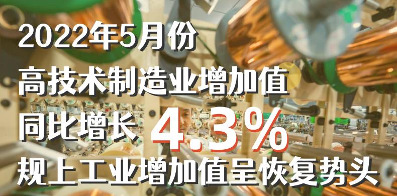 光明网讯(记者 张诗奇)6月15日,国家统计局发布5月份国民经济运行数据,其中规上工业增加值呈现恢复势头。从环比看,5月规上工业增加值比上月增长5.61%。值得注意的是,高技术制造业增加明显高于规模以上工业——同比增长4.3%,新能源汽车、太阳能电池等新产品的产量继续保持高速增长,展现出我国产业升级发展、新动能成长壮大的趋势没有改变。