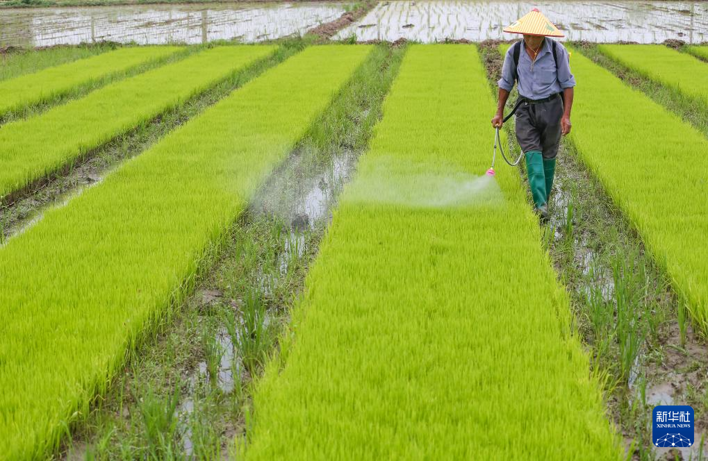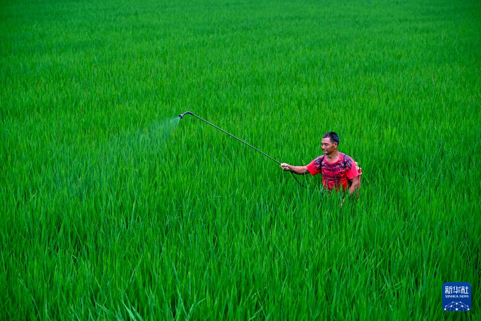 6月20日,四川省眉山市仁寿县彰加镇铁炉村农民在田间喷洒农药。