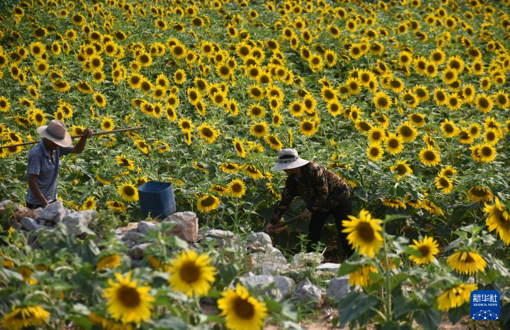 6月20日,山东省淄博市沂源县南麻街道重喜官庄村的农民在田间劳作。