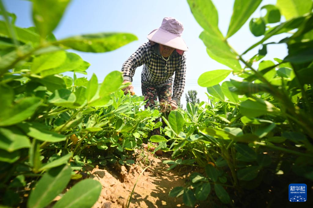 6月20日,河南省开封市鼓楼区仙人庄乡何楼村农民在花生地里除草。