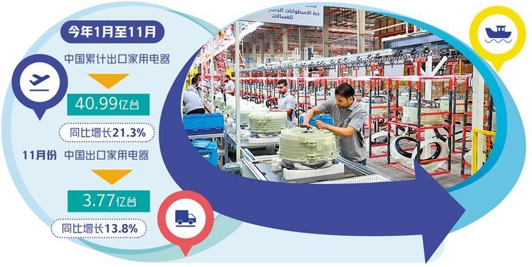 展望全年家电出口形势,中国机电产品进出口商会家用电器分会秘书长周南分析,前10个月我国家电(白电)出口1072.6亿美元,同比增长14.5%,今年全年家电出口规模有望再创新高,预计超过1200亿美元。