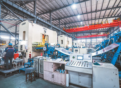 浙江省慈溪市中小企业通过推动新技术、新材料的应用以及数字化工厂建设,加快数字化、智能化转型,提升市场竞争力。图为慈溪市新浦镇的宁波神马集团有限公司车间内,自动化生产线在生产铜铝共晶板。新华社记者徐 昱摄