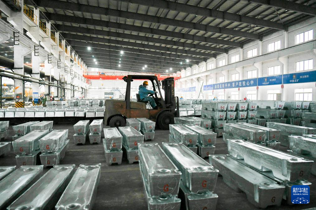 2月6日,在湖南省常宁市水口山经济开发区,湖南株冶有色金属有限公司成品车间工人在转运产品。