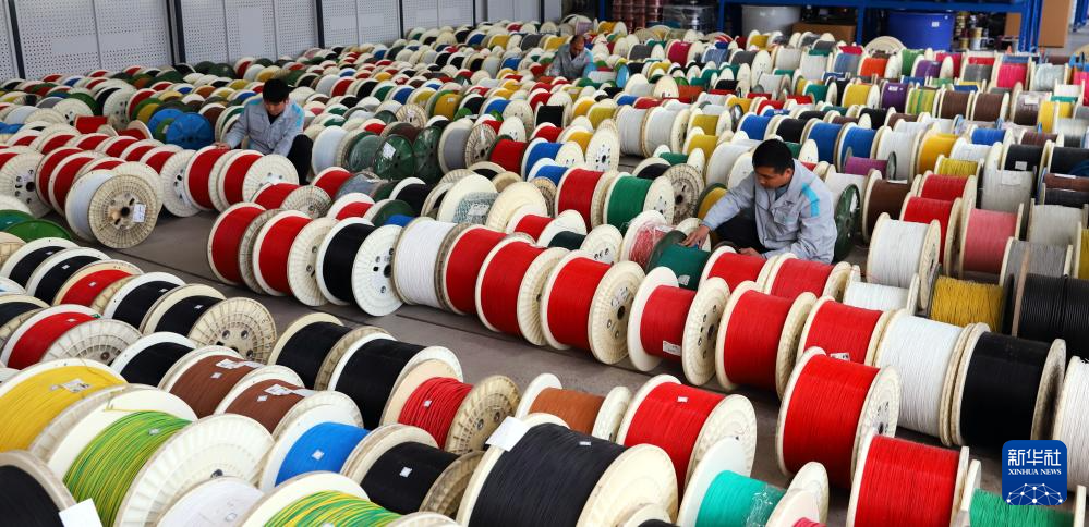 2月7日,在浙江省台州市路桥区新桥镇的飞达科技有限公司生产车间,工人在检查生产的电线电缆。