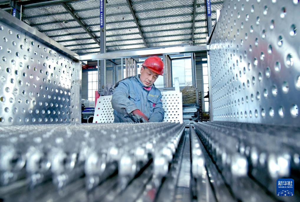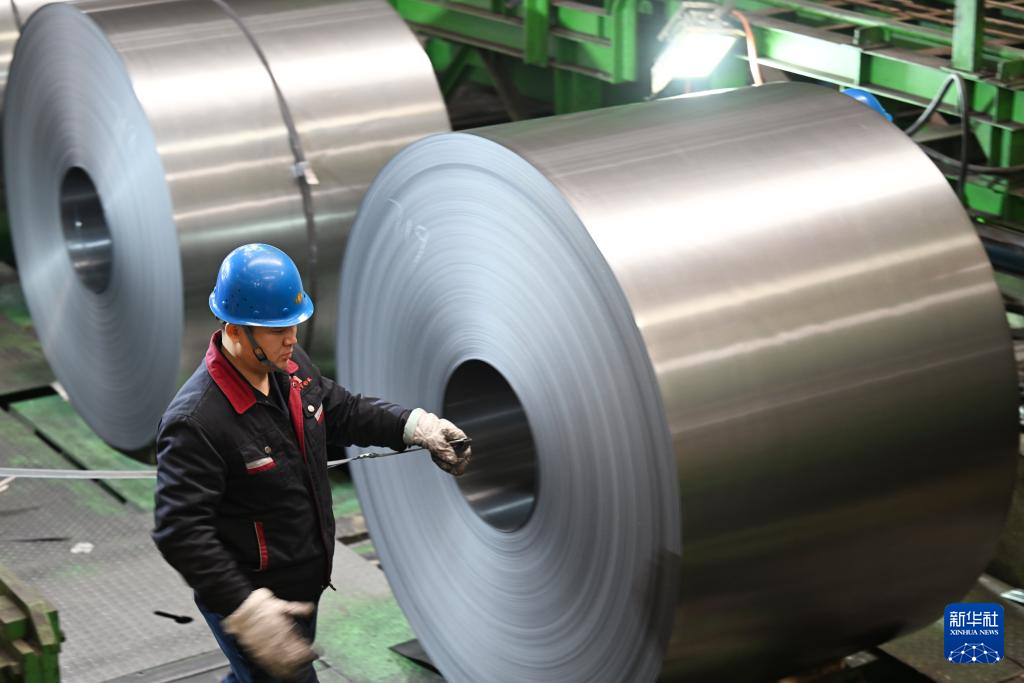2月6日,在天津市西青区精武镇新宇彩板有限公司,员工在产线上工作。