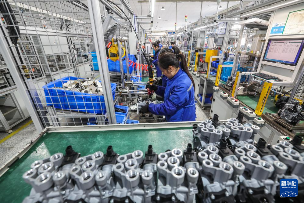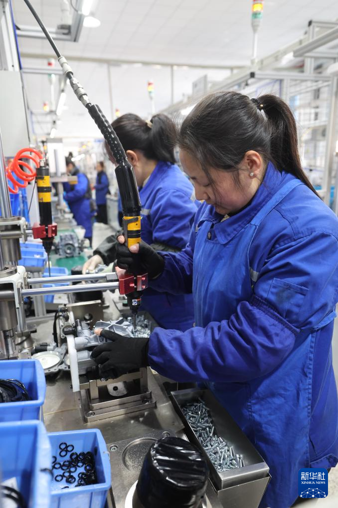 2月7日,在位于浙江诸暨店口镇的浙江万安科技股份有限公司ABS集成继动阀装配检测线上,工人在装配产品。该公司是国家高新技术企业,致力于汽车底盘电控系统、电动汽车轻量化底盘的研发制造。