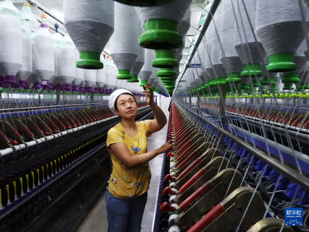 2月7日,工人在位于四川省达州市渠县经开区的四川航彩纺织有限公司车间加工出口高端纱线。
