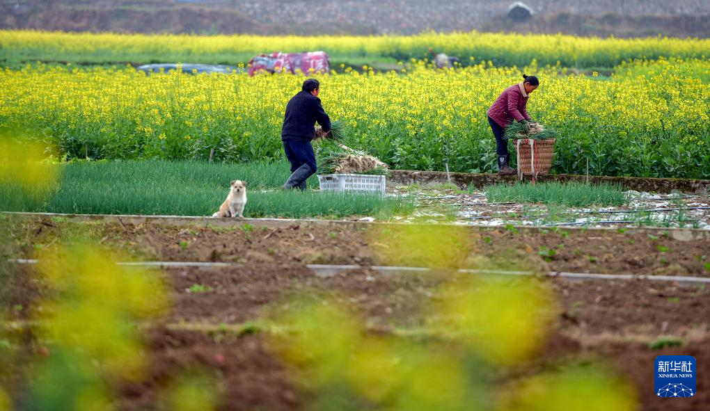 3月5日,在贵州省遵义市余庆县白泥镇满溪村,农民在采摘分葱。