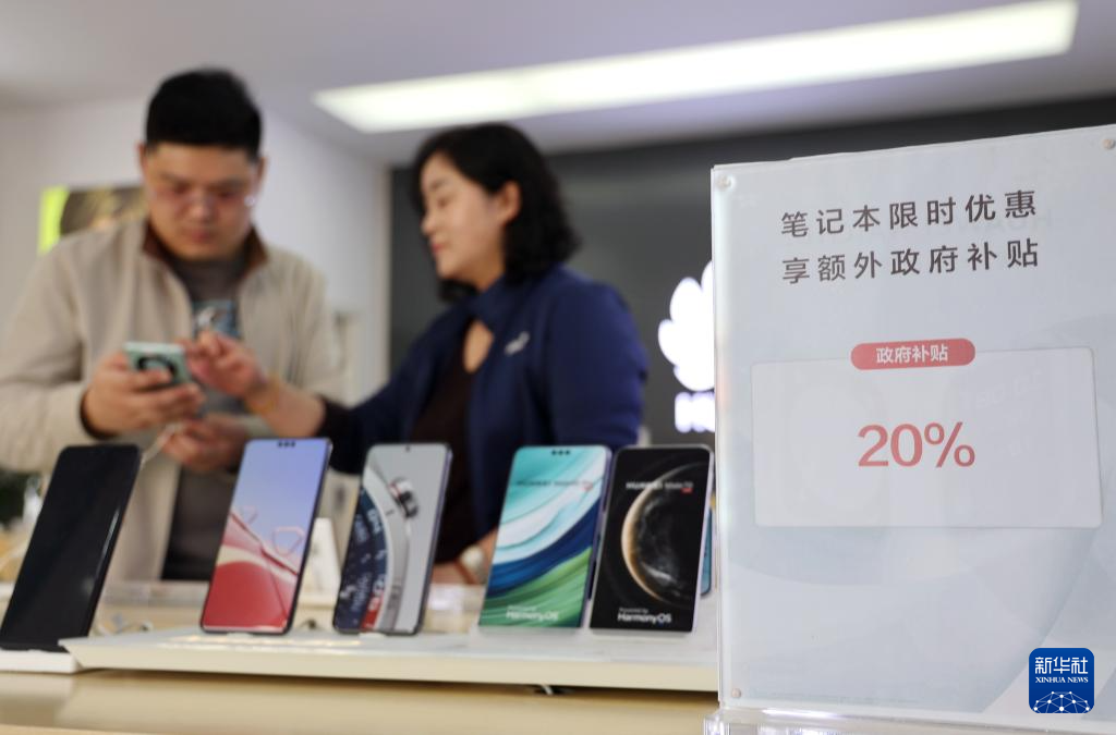 3月9日,消费者在山东省滨州市阳信县的一家手机商店内选购手机。