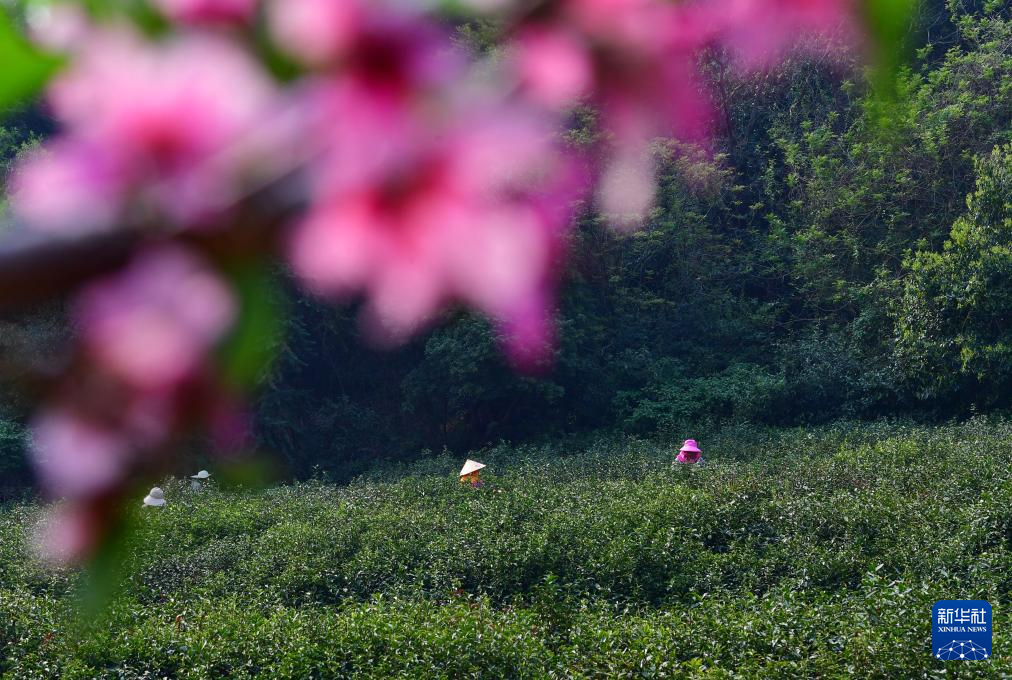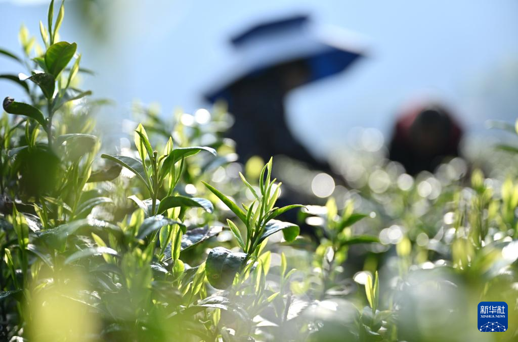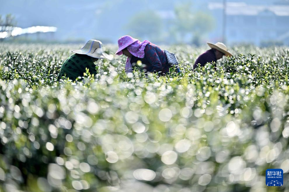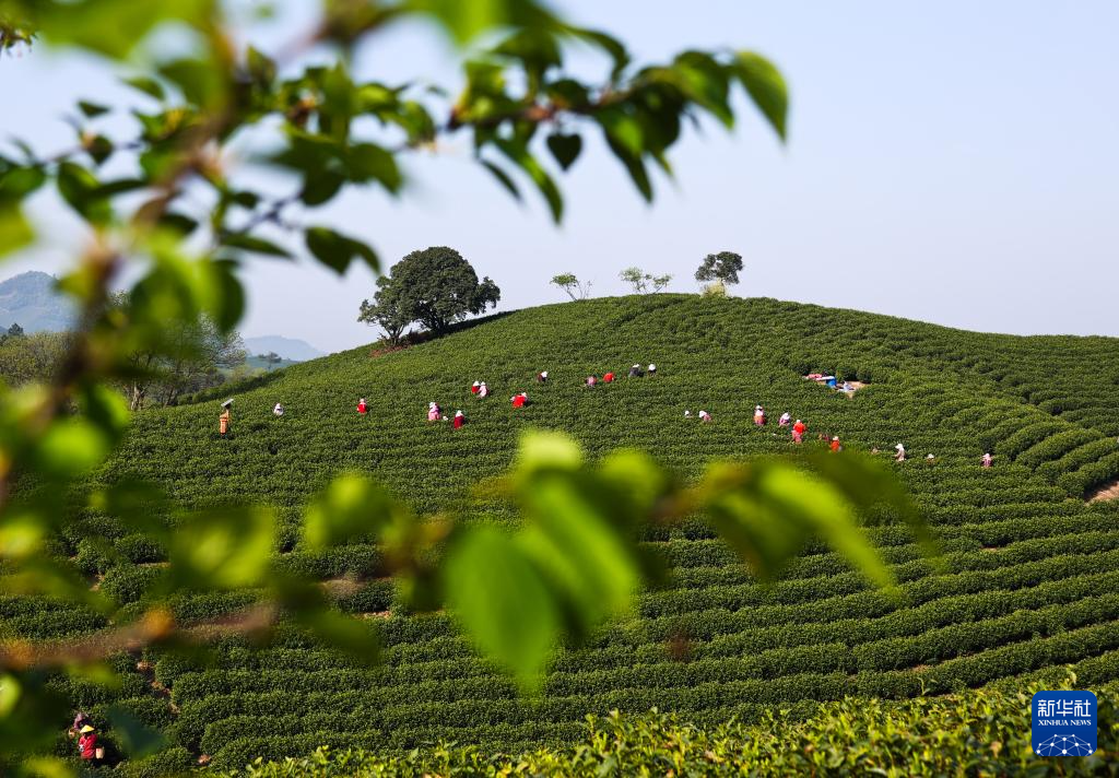 4月9日,茶农在湖北省宣恩县椒园镇水田坝村的茶园里采摘白茶。