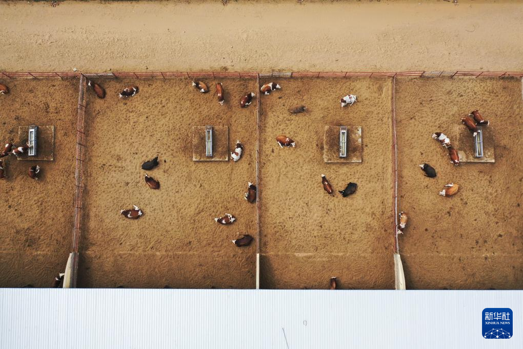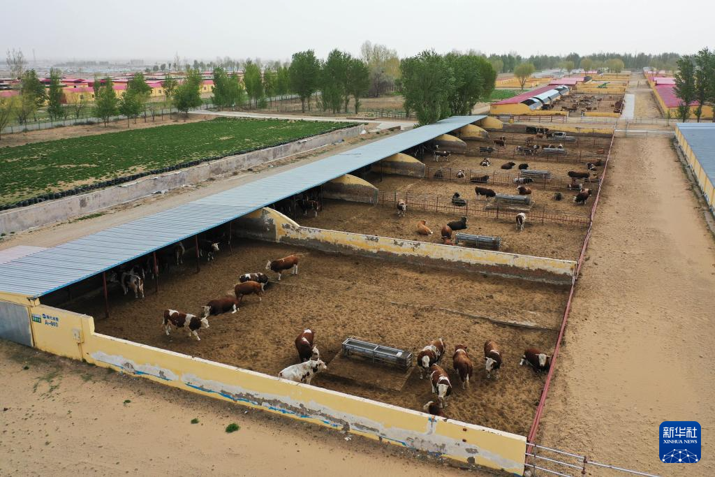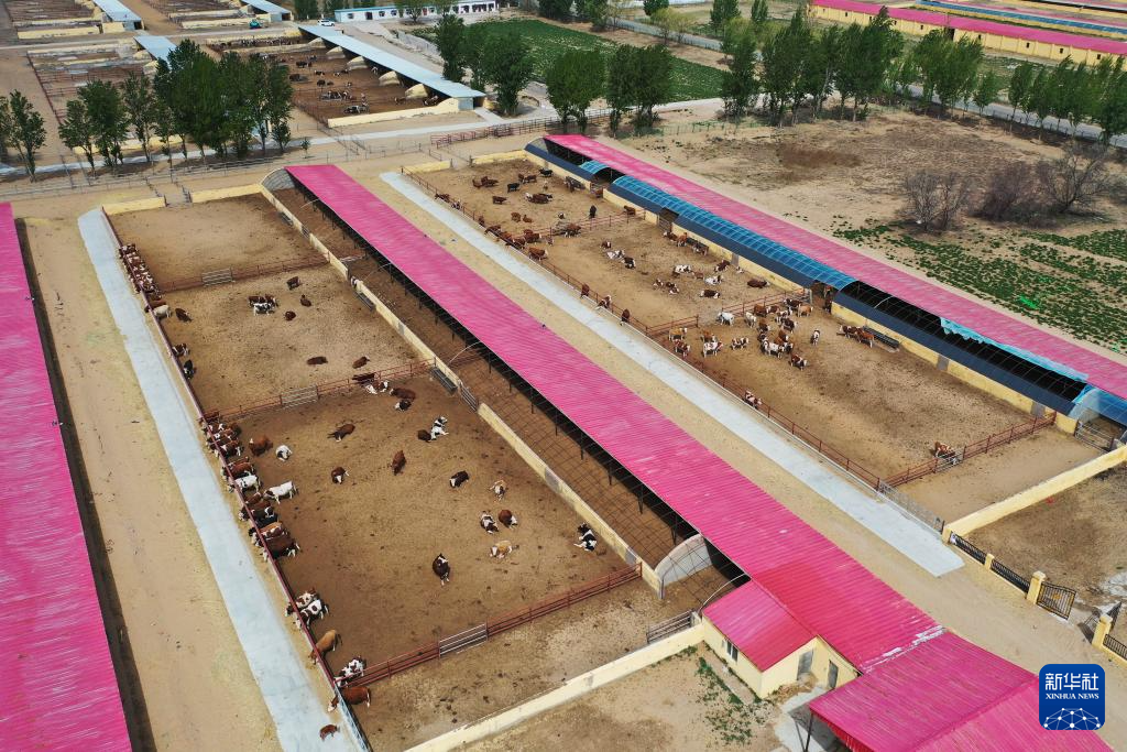 4月29日拍摄的杭锦旗一家肉牛养殖企业(无人机照片)。