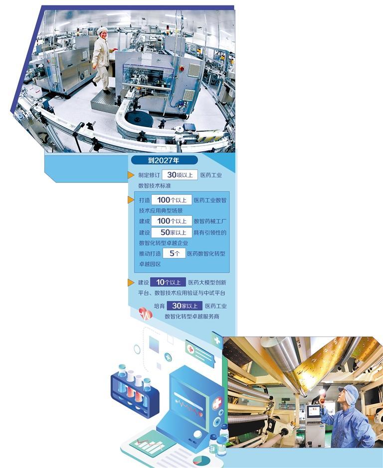 《实施方案》重点围绕数智化发展基础建设、数智化转型推广、支撑服务体系建设3个方面提出了到2027年的具体指标:一是突破一批医药工业数智化关键技术,制定修订30项以上医药工业数智技术标准,在智能制药设备、检测仪器和制药工业软件等领域研发推广100款以上高性能产品;二是打造100个以上医药工业数智技术应用典型场景,建成100个以上数智药械工厂,建设50家以上具有引领性的数智化转型卓越企业,推动打造5个医药数智化转型卓越园区;三是建设医药工业数智化转型促进中心及分中心,建设10个以上医药大模型创新平台、数智技术应用验证与中试平台,培育30家以上医药工业数智化转型卓越服务商。