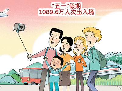 国家移民管理局通报,今年“五一”假期全国边检机关共保障1089.6万人次中外人员出入境。朱慧卿作(新华社发)
