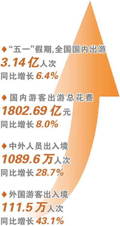 数据显示,今年“五一”期间,1089.6万人次中外人员出入境,同比增长28.7%;其中,外国游客出入境111.5万人次,同比增长43.1%。中国出境游、入境游市场热度双升。