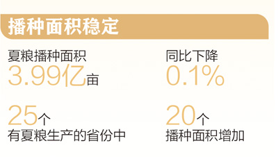 今年夏粮总产量2994.8亿斤,比上年减少3.1亿斤;单产每亩375.6公斤,比上年增加0.1公斤。