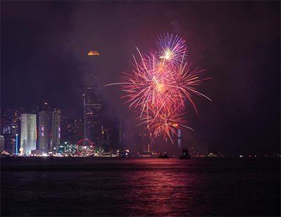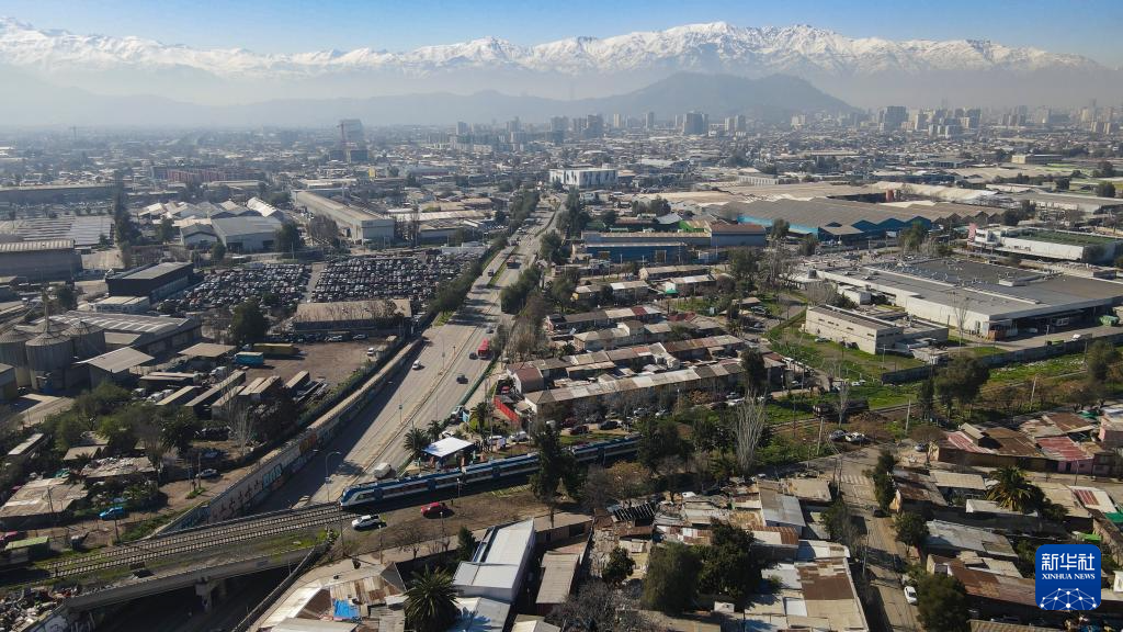 8月25日,在智利圣地亚哥首都大区伦卡市,一辆中国制造的列车停在仪式现场(无人机照片)。