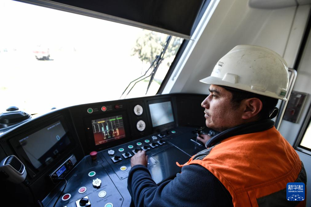 8月25日,在智利圣地亚哥首都大区伦卡市举行的签约仪式上,智利国家铁路公司一名员工在列车驾驶室内工作。