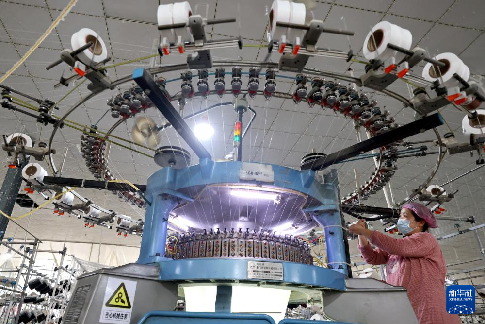1月4日,在江苏省连云港高新区海州工业园一家企业生产车间,工人在毛毯生产线上忙碌。
