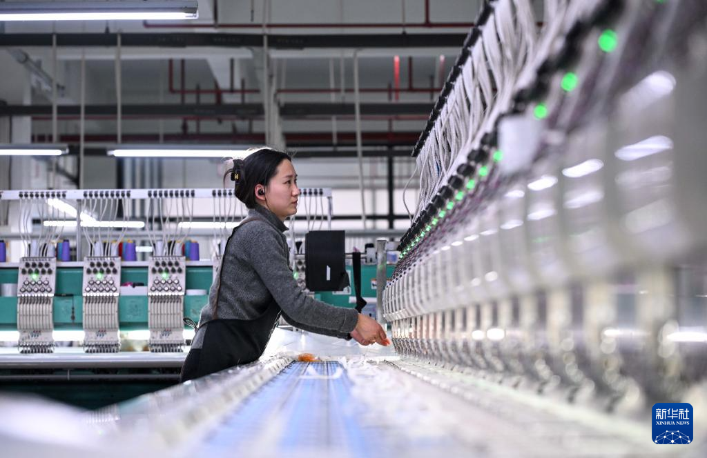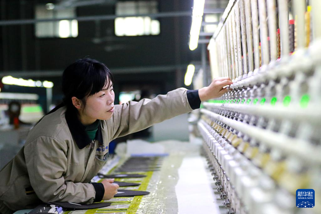 1月4日,在河南省商丘市夏邑县高新技术产业开发区一家帽业公司,工人在绣花车间生产线上忙碌。