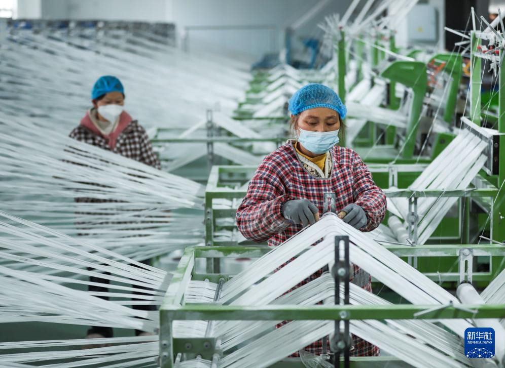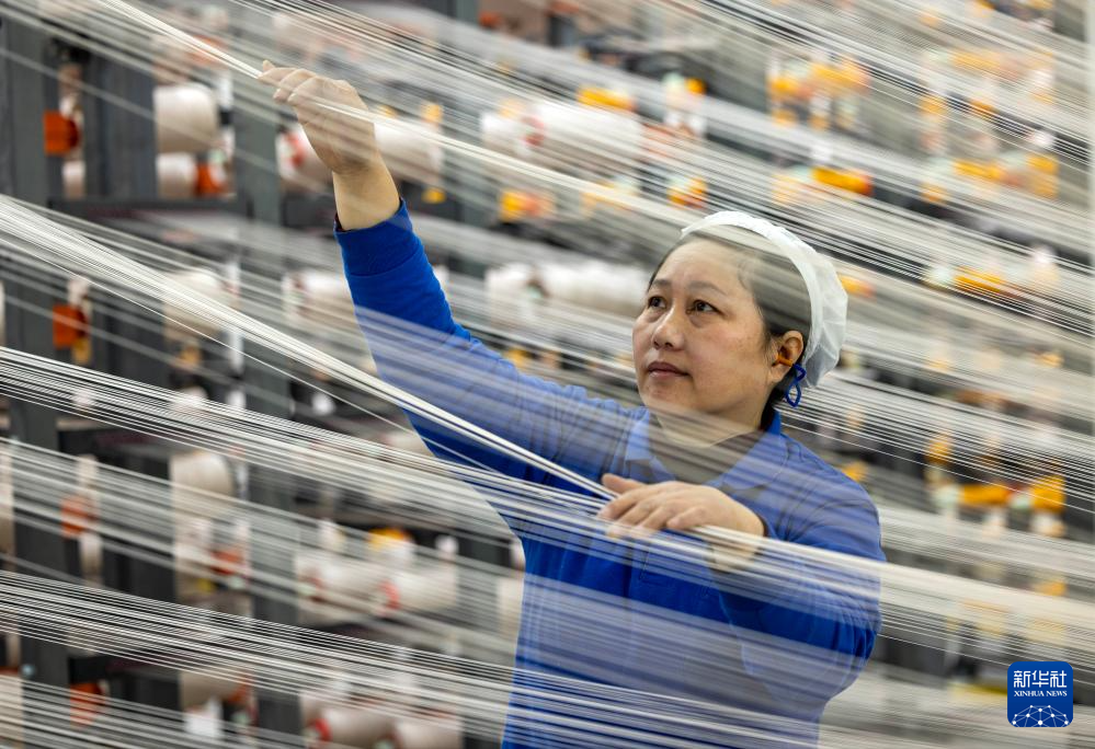 1月4日,工人在江苏省泰州市一家企业纺织车间内忙碌。