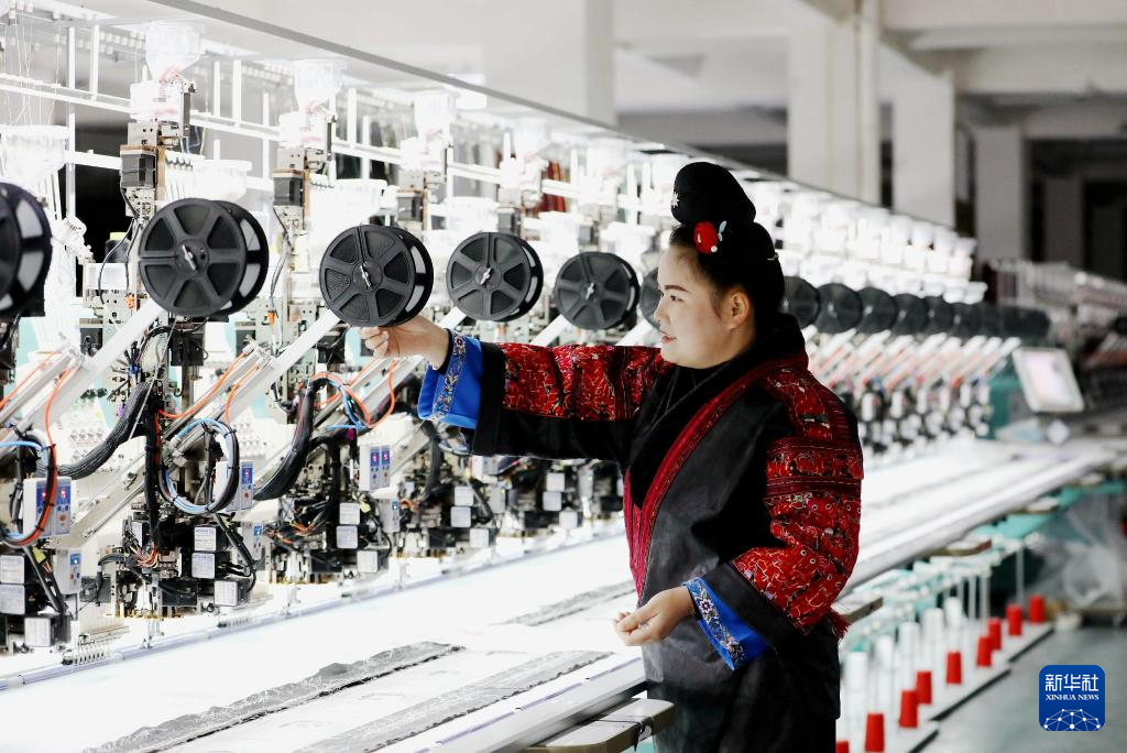 1月4日,绣娘在贵州省黔东南苗族侗族自治州施秉县一家数字化苗绣企业生产车间作业。